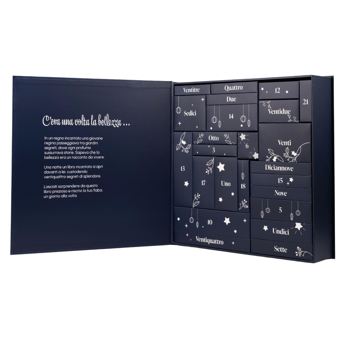 Con la sua elegante confezione, il calendario dell’Avvento Racconti di Bellezza è molto più di un regalo: è un oggetto da esporre, collezionare e vivere. Perfetto per chi ama il mondo della cosmesi e cerca un’idea regalo di Natale unica e preziosa.